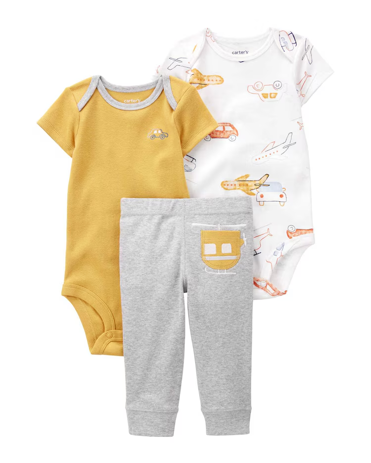 Deixe sua baby ainda mais fofinha com o Conjunto longo bebê 3 peças helicóptero multicor | Carter’s. Contando com dois bodies com abotoamento entrepernas, sendo um deles em malha canelada, uma calça com cós de elástico com babadinhos, o conjunto é perfeito para aliar delicadeza e conforto para a sua baby. Aposte!